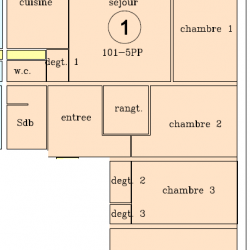 Composé d'une entrée, une cuisine, un séjour, deux chambres, une salle de bain et un W.C. indépendant avec lavabo.
