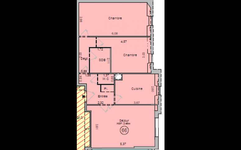 Trois Moulins Habitat vend à Thorigny sur Marne, dans une résidence proche de la gare, au 3ème et dernier étage sans ascenseur, un F3 de 67,9m².